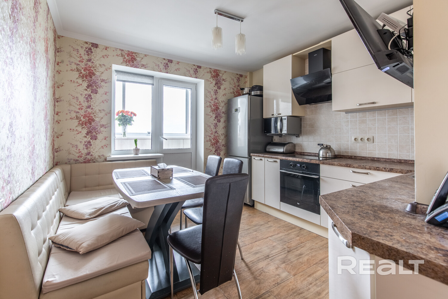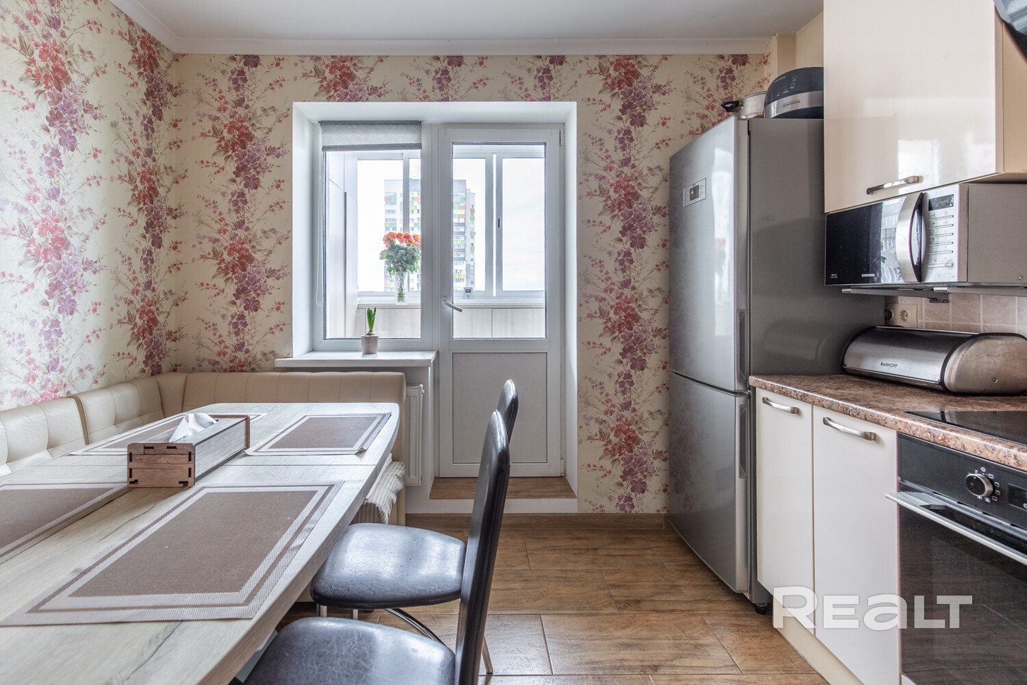 Квартира расположена на девятом этаже из четырнадцати. Перед окнами никаких преград, поэтому солнечный свет будет с вами до сумерек.