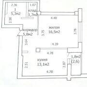 · Комната – 16,5 м.кв. Коридор – 5,8 м.кв.