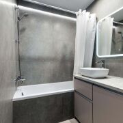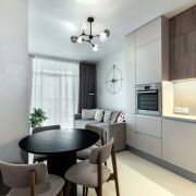 -Премиальный ремонт, выполненный с безупречным вкусом и качеством. Полы- микроцемент Hauptmann тактильно приятные и практичные . Стены украшены декоративной штукатуркой с изысканной фактурой. Каждый элемент подобран с вниманием к деталям и комфорту.