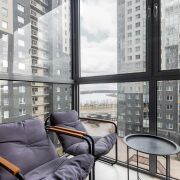 -Два балкона с панорамным остеклением — главная фишка квартиры, создающая ощущение единения с природой. На балконах расположена зона отдыха с видом на город, парк и акваторию. Идеально для утреннего кофе, вечерних медитаций или работы.