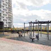 - На территории комплекса расположены удобные колясочные и велосипедные, три детские площадки на стилобате. Парковка распределена на 2 уровнях подземного паркинга с кладовыми для хранения вещей и сезонных предметов.
