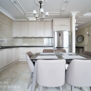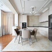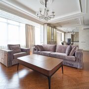 Квартира  3-х комнатная общей площадью 156 кв.м. с классическим ремонтом.  Планировка и весь интерьер до мельчайших деталей были разработаны именитыми дизайнерами. Много мест для хранения вещей, большая гардеробная в коридоре, а также в двух комнатах отдельные гардеробные. Помимо двух просторных санузлов, есть отдельная постирочная комната. Многие предметы интерьера – штучные экземпляры, которые доставили из разных уголков мира, а самое приятное, что всё это абсолютно новое! В квартире никто никогда не проживал.   В квартире использованы качественные импортные материалы, включая паркет на полу, современные межкомнатные двери, кухня с техникой.