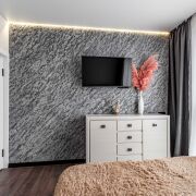 Интерьер выполнен в спокойной современной стилистике. Использованы качественные материалы: