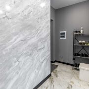 — на полу сочетание керамогранита и ламината,