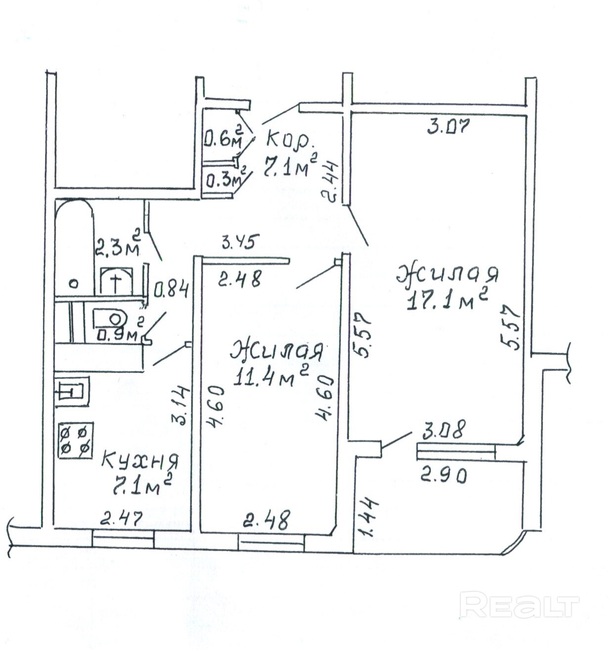 7.1 м²