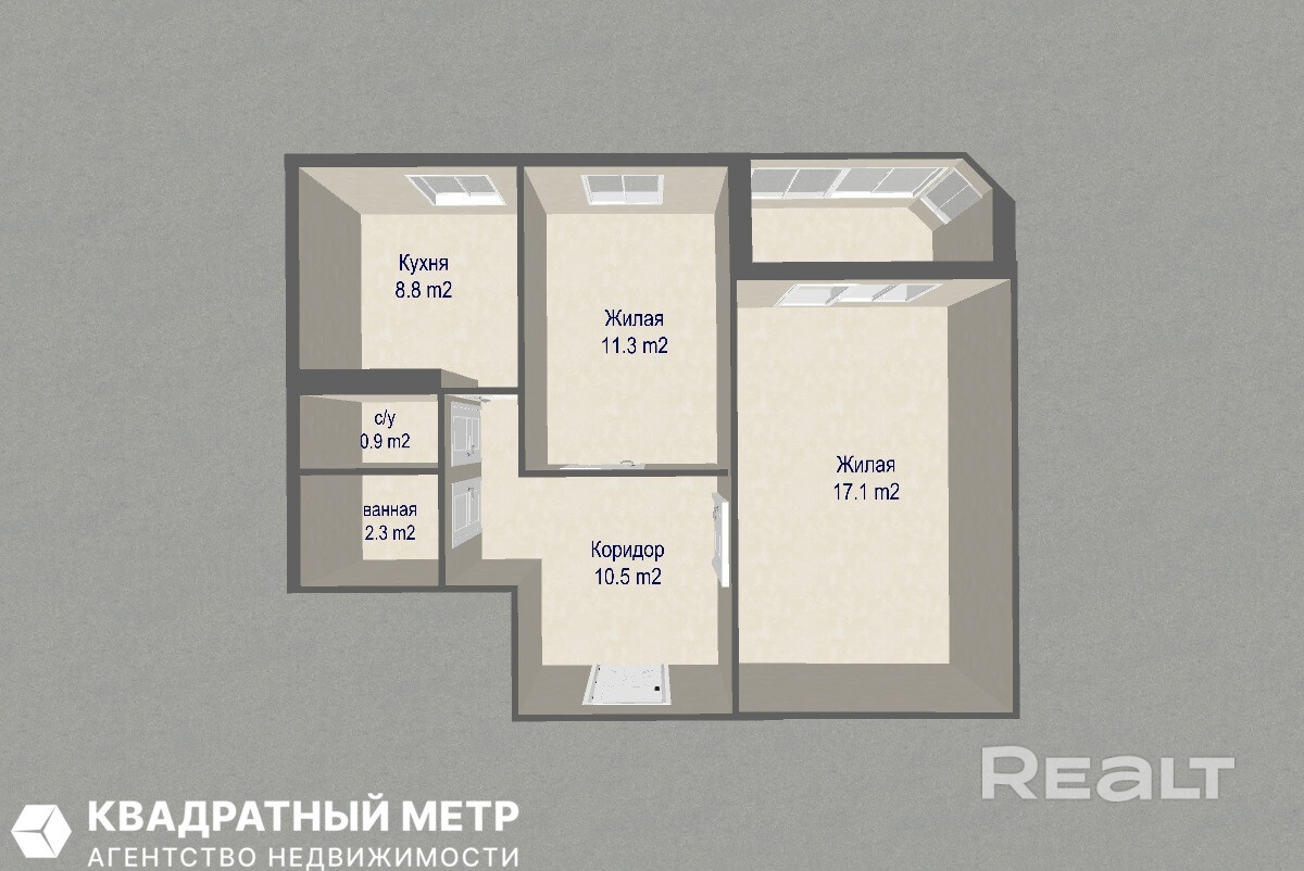 · Комнаты: 11,3 м2 и 17,1 м2 (изолированные? уточните)