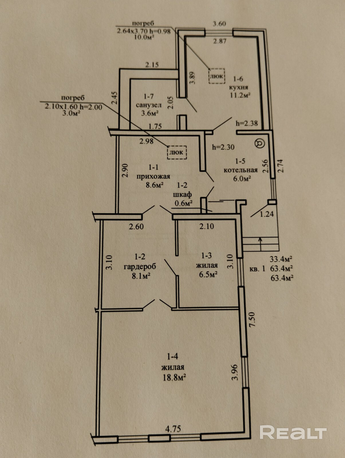 63.4 м²