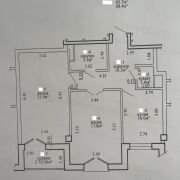 Площадь 68,4 кв.м. по СНБ. Высота потолков-3,0 м. Две раздельные комнаты: 22 кв.м. с лоджией 3,8 кв.м. и 17,8 кв.м. с французским балкончиком. Кухня 10 кв.м., установлена мойка со смесителем и электроплита. Два оборудованных санузла, в каждом установлены унитазы, умывальники со смесителями, в большом санузле ванна. На полу плитка и линолеум, на стенах обои. Качественная металлическая входная дверь. Натяжные матовые потолки.