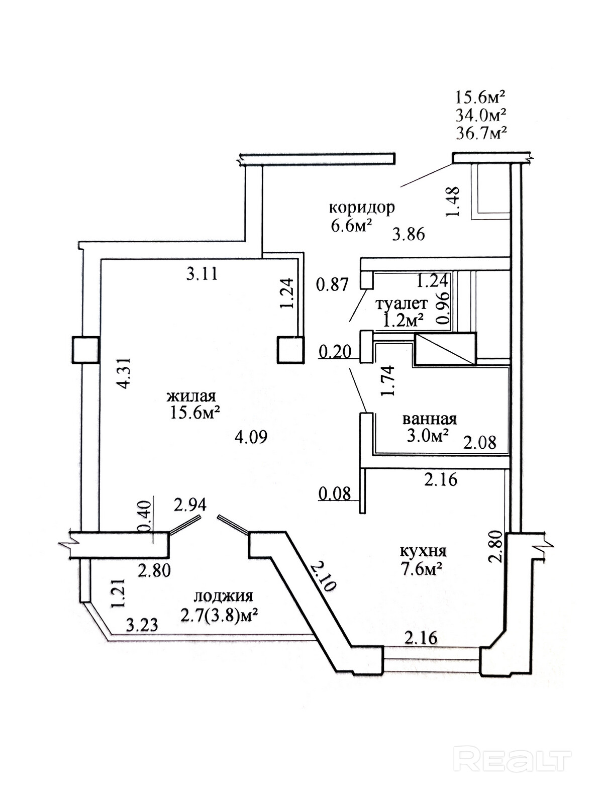 15.6 м²