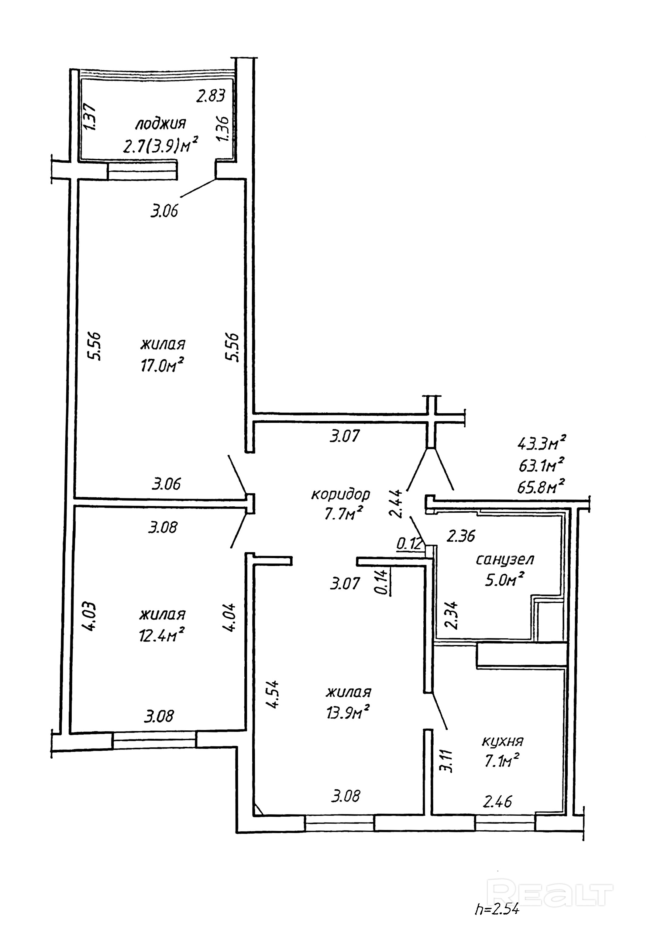 - две изолированные комнаты 12.4 и 17.0 кв.м;