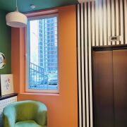 · Дизайнерские лобби с местом для консьержа, зоной отдыха, санитарной комнатой с пеленальным столиком и местом для мытья лап животных.