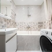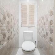 - Санузел раздельный. Стены и пол облицованы качественным керамогранитом, потолок натяжной — практичное и стильное решение.