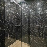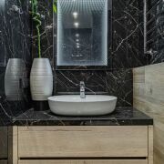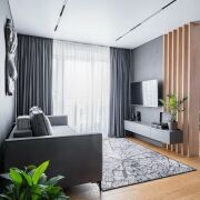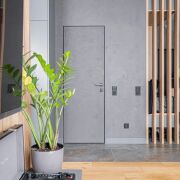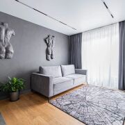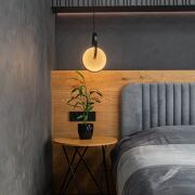 Стены, окрашенные в глубокий графитовый цвет, создают неповторимую атмосферу. Этот элегантный оттенок придает пространству современную строгость, но в то же время окутывает легкой загадкой и уютом.