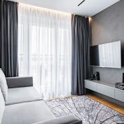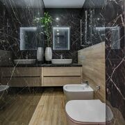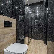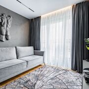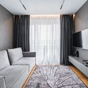 Освещение играет ключевую роль в создании настроения, предлагая разнообразные световые сценарии. На стенах вас встретят уникальные барельефы, созданные по авторскому эскизу. Санузел, отделанный высококачественным черным керамогранитом, оснащен унитазом, биде и современной душевой системой с тропическим душем. Комфортную температуру в любое время года обеспечит кондиционер премиум-класса. Напольное покрытие искусно сочетает в себе элегантность плитки и природное тепло дубового паркета. Забудьте о ключах – входная дверь оборудована надежным сканером отпечатков пальцев, гарантируя вашу безопасность и спокойствие.