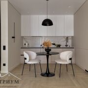 Ремонт выполнен по индивидуальному дизайн-проекту с использованием износостойких и эстетичных материалов: