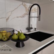 Эстетика: Зона ТВ и кухонный фартук выполнены из роскошного итальянского керамогранита.