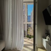 Вид и свет: 8-й этаж, окна выходят на ул. Белградскую. В квартире много света! Утром — мягкий свет, отраженный от домов напротив, вечером — завораживающие закаты.