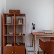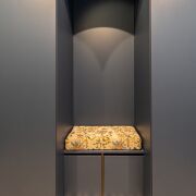 Под лестницей оборудована вместительная и удобная кладовая. Полы первого этажа - плитка и паркет. Есть теплые полы. В гостиной — авторский барельеф от белорусского декоратора и диван, созданный по индивидуальному заказу. Винтажный свет и буфет. Лестница выполнена из бетона, ступени отделаны шпоном.