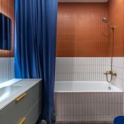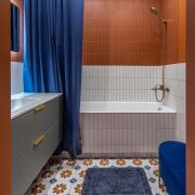 Испанская плитка в ванне и санузле. Бесшовные и экологичные обои в спальне и детской. Встроенная гардеробная с окном во взрослой спальне.