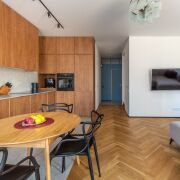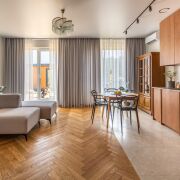 Интерьер таунхауса выглядит стильно, современно и очень уютно, при этом он отличается удобством и продуманной организацией пространства. Зонирование выполнено с максимальной эффективностью, а для ремонта использовались только качественные и экологически чистые материалы.