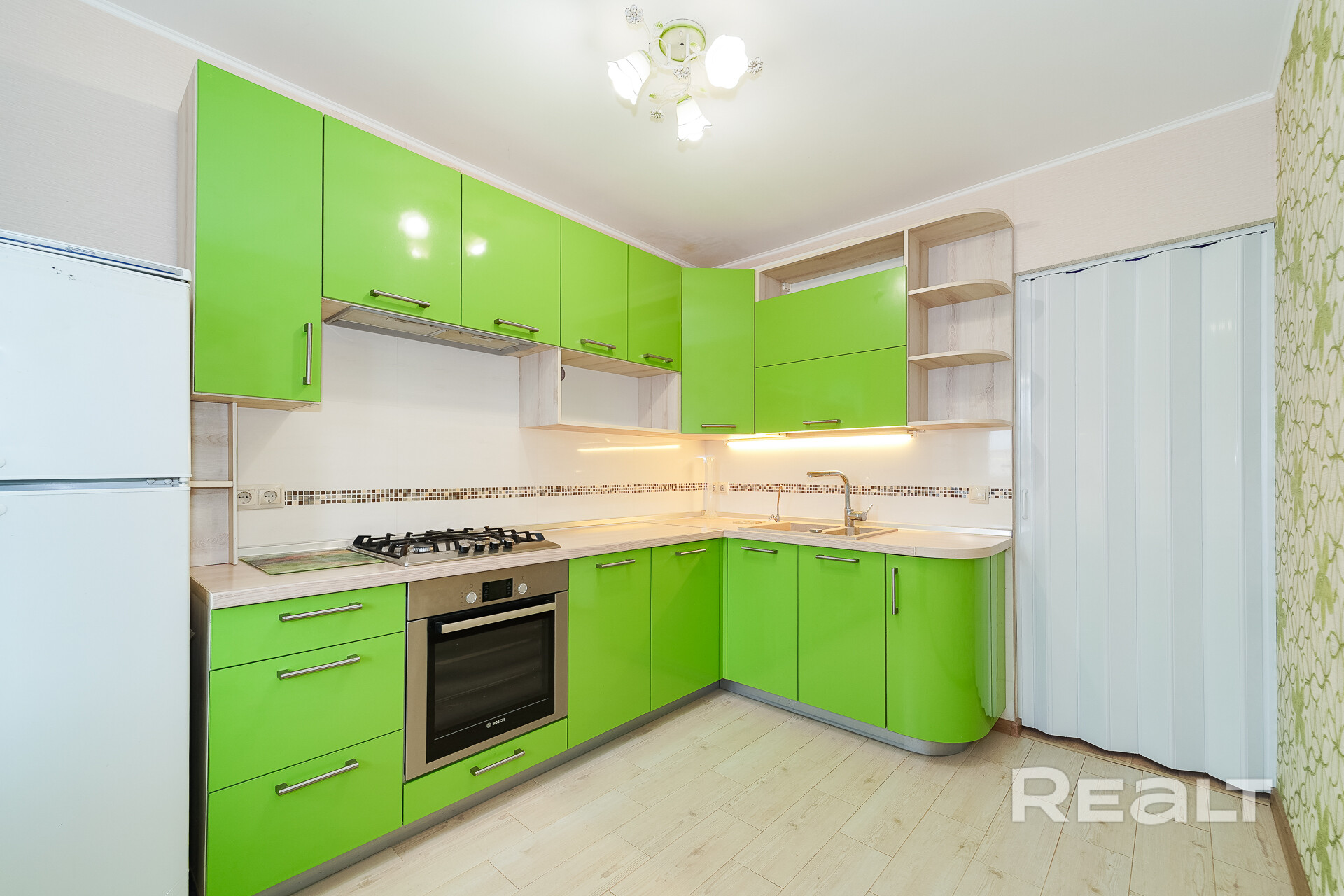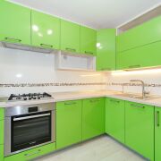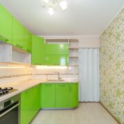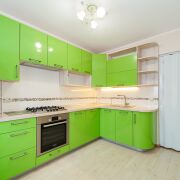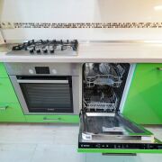 Функциональная кухня оборудована бытовой техникой, оснащена качественной фурнитурой Blum, есть посудомоечная машина и духовой шкаф Bosch.