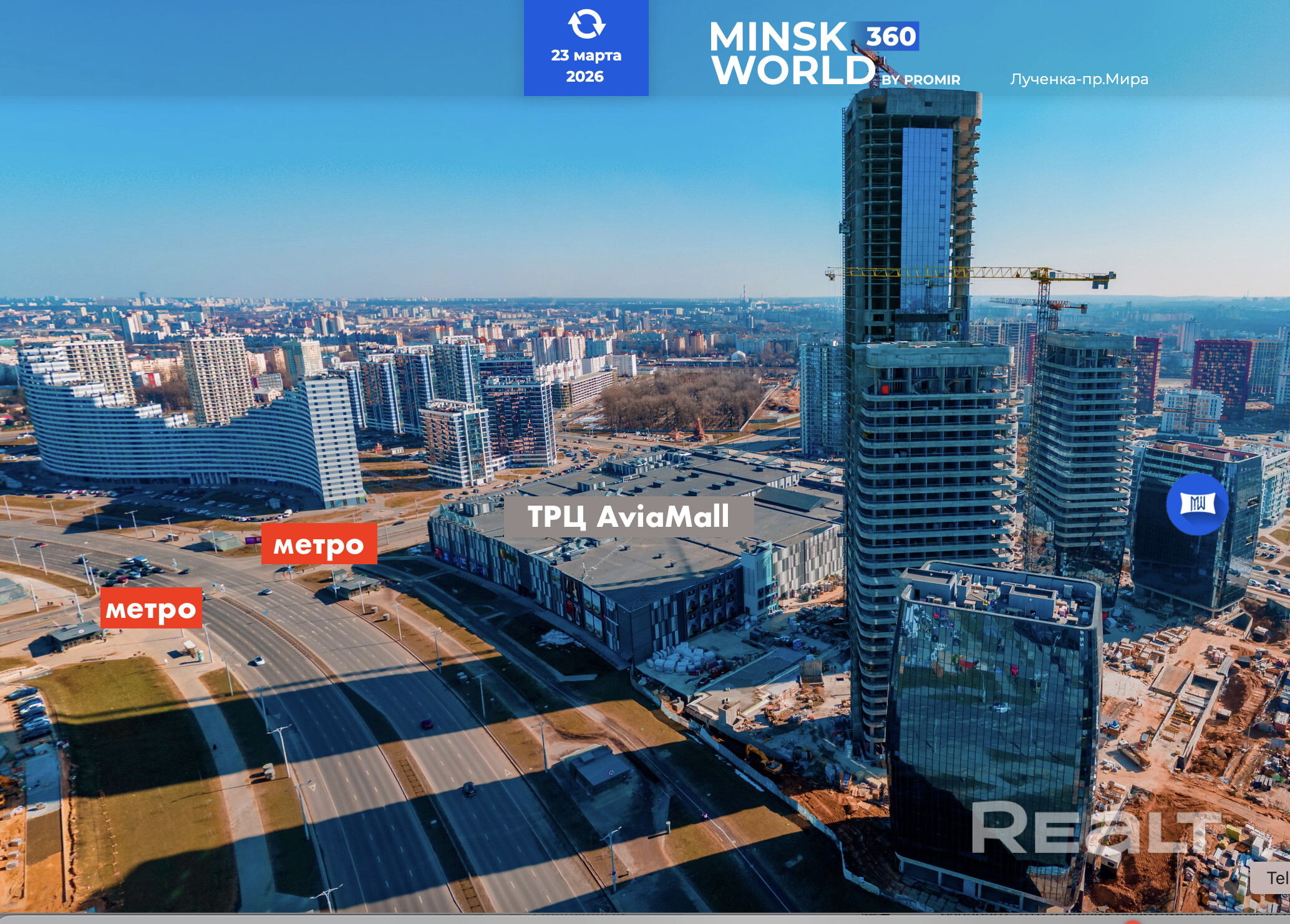 В шаговой доступности: остановки наземного общественного транспорта, до станции метро «Аэродромная» - 1 мин (уже работает). Рядом пр-т Мира – центральная магистраль комплекса «Minsk World», обеспечивает связь второго транспортного кольца с улицей Кижеватова. За считанные минуты можно добраться как до центра города, так и до МКАД.
