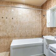 - Современный санузел в стильной плитке — красиво и удобно
