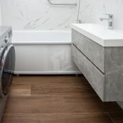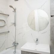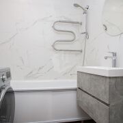 Стены в ванной — крупноформатная плитка под мрамор (Испания)