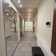 На этаже всего три квартиры. В доме два лифта: пассажирский и грузовой. Дом обслуживает товарищество собственников. Есть консьерж. По периметру и в парадной части подъезда установлено видеонаблюдение. Своя парковка под шлагбаумом.
