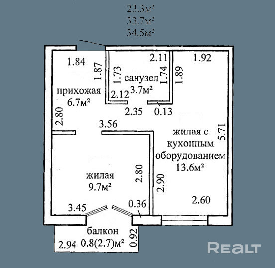 34.5 м²