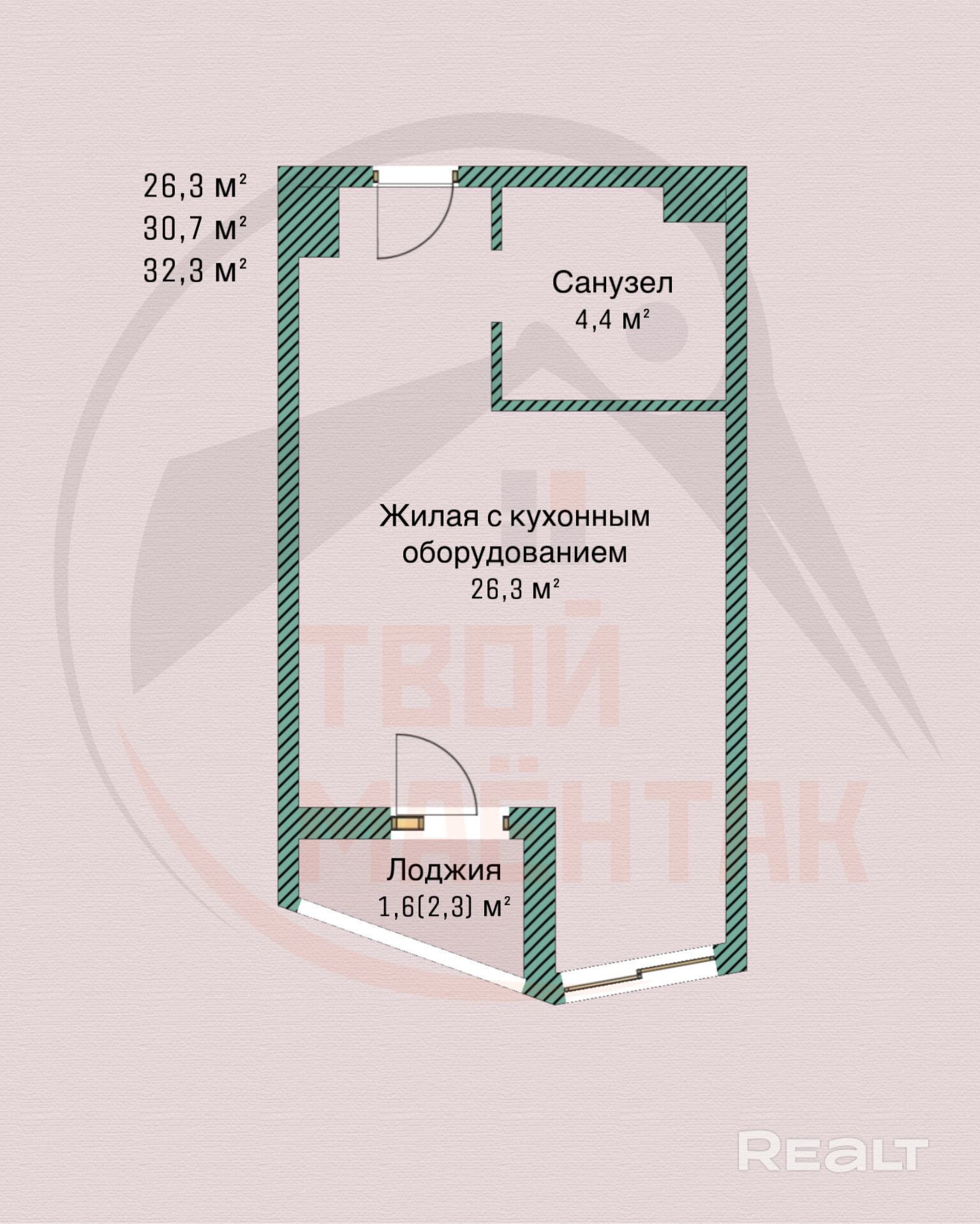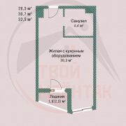 Студия площадью по СНБ - 32.3 м.кв. ,общая- 31 м.кв.