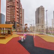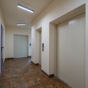 Три лифта, один из которых панорамный.