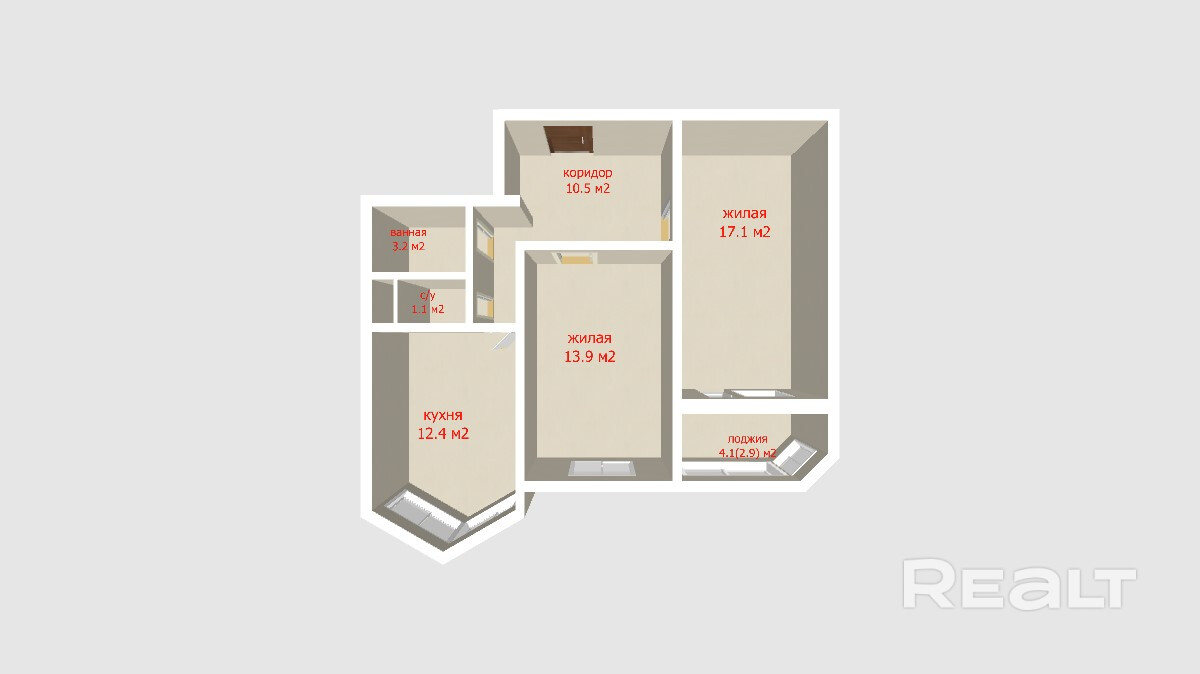 Продажа светлой и современной двухкомнатной квартиры площадью 61,1 м2 по СНБ.