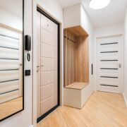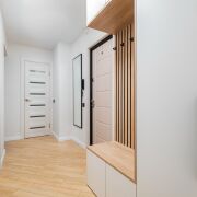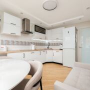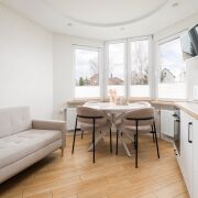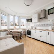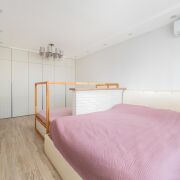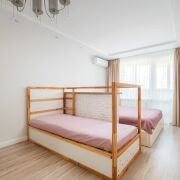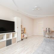 В квартире выполнен современный ремонт в светлых тонах, грамотно зонировано пространство: большая кухня (13 м2) с эркерным окном и две просторные комнаты (17 м2 + 17 м2), также имеется отдельная гардеробная — всё для вашего удобства!