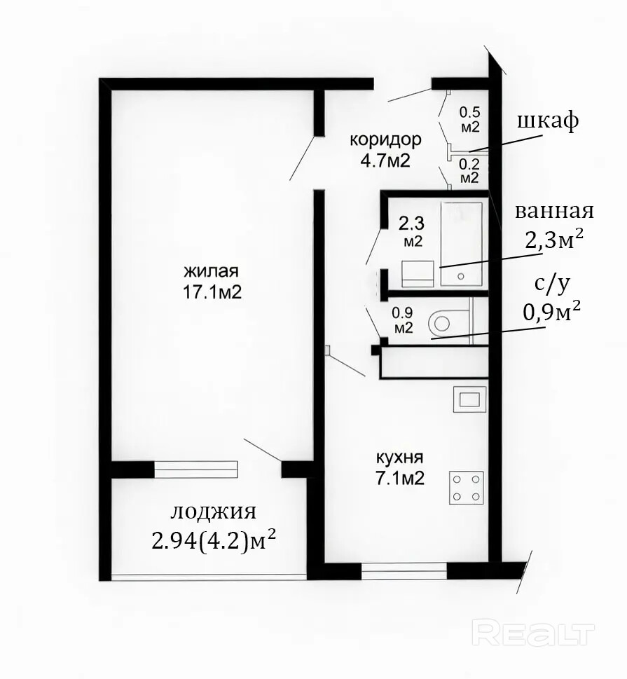 17.1 м²
