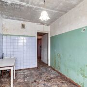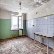 Кухня в данной квартире большая и функциональная, пространства достаточно для установки кухонной мебели и необходимых бытовых приборов.