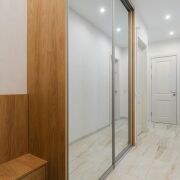 - Установлена металлическая входная дверь. В коридоре керамогранит, устойчивый к износу и влаге. Вместительный шкаф-купе решает вопрос хранения. Умная система освещения позволяет задавать различные сценарии света и управлять освещением более гибко.