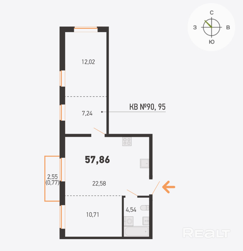 57.86 м²