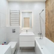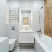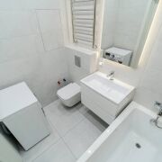 - Санузел полностью облицован плиткой – аккуратно и легко мыть