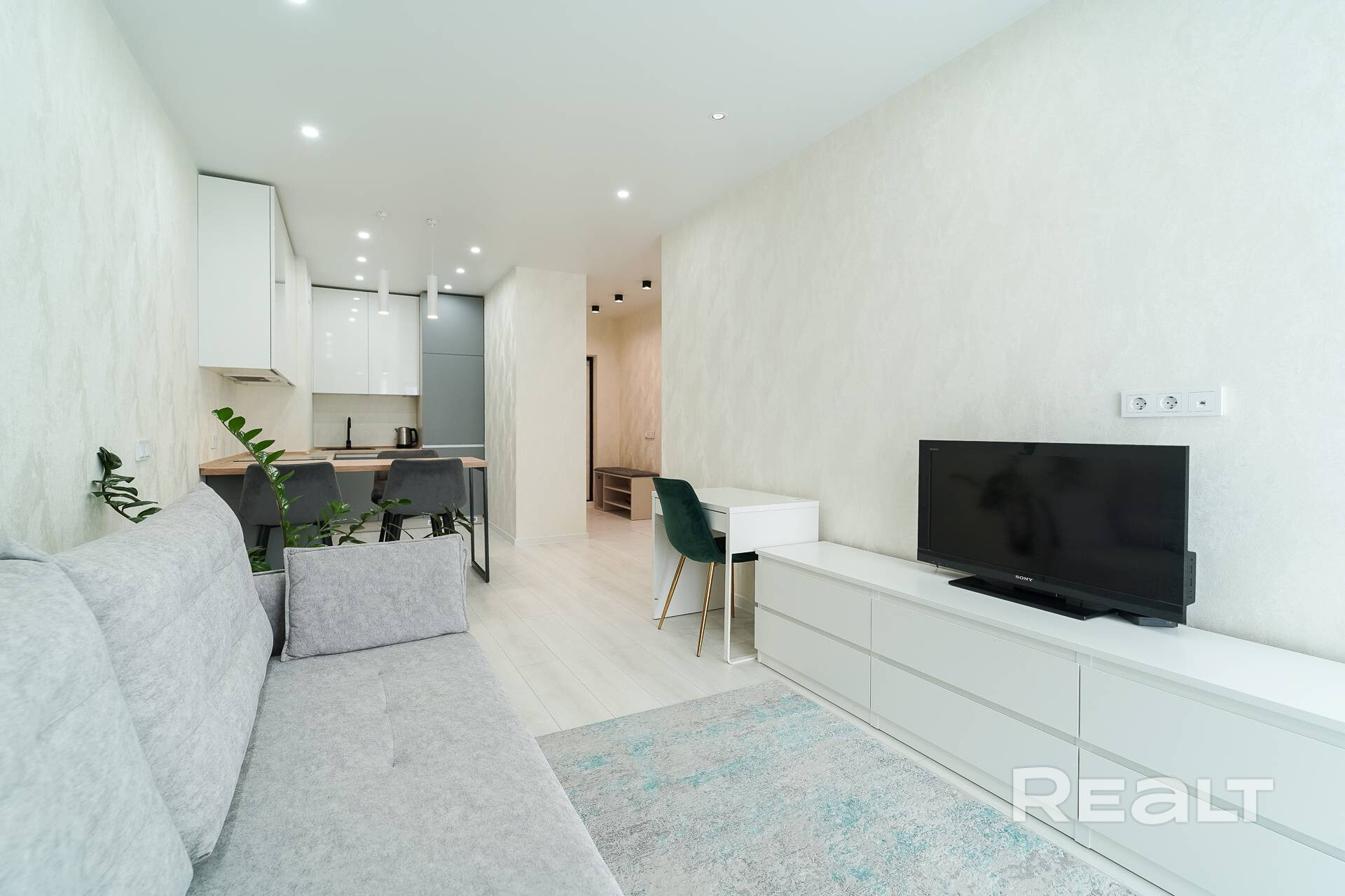 42 м2 — продуманная европланировка: изолированная спальня + кухня - гостиная.