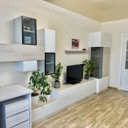 В квартире уже всё готово: стеклопакеты, натяжные потолки, плитка в санузле. Лоджия застеклена.