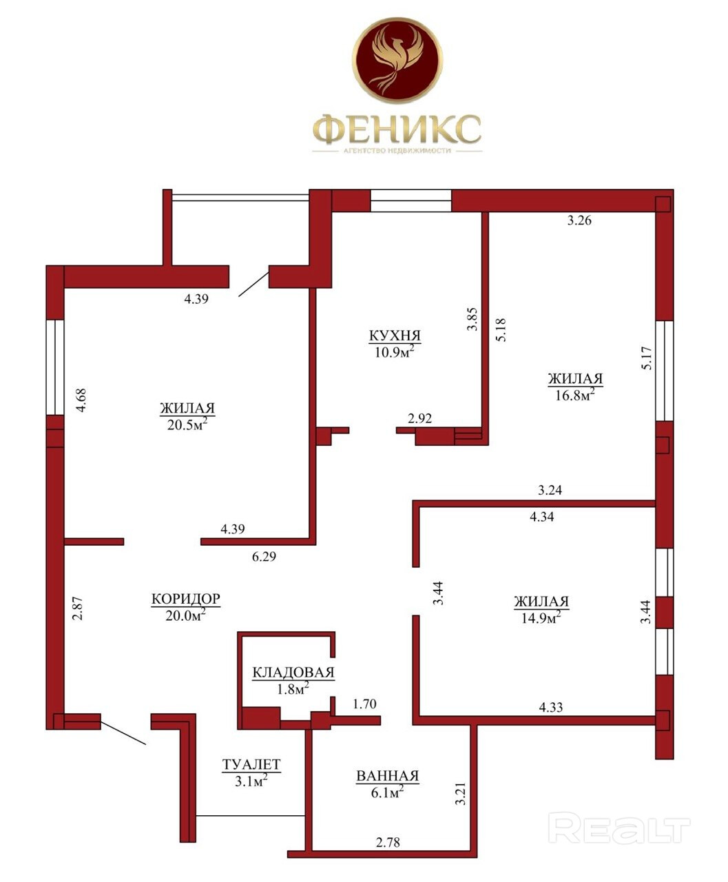 Продаётся просторная 3-комнатная квартира общей площадью 94 м2 в кирпичном доме 2008 года постройки.