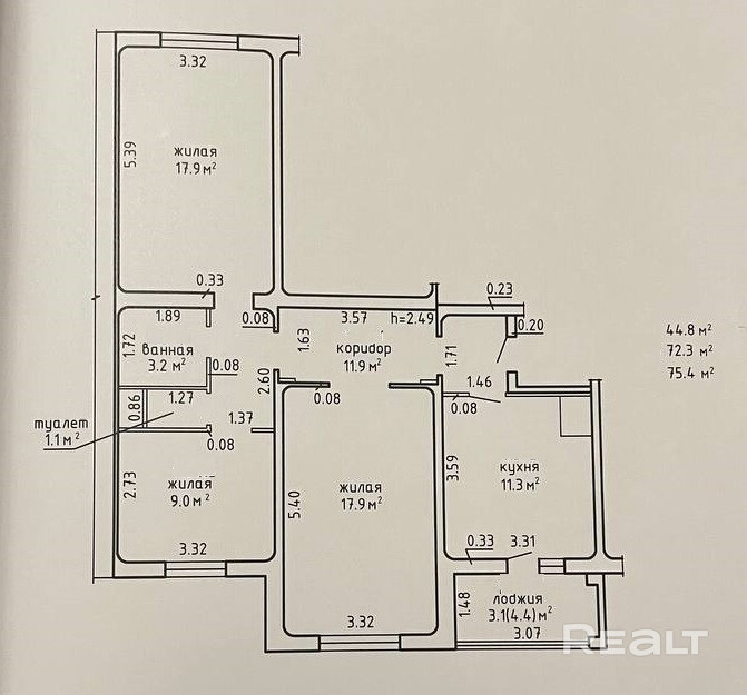 Хорошее расположение дома и удачная планировка, окна на две стороны (просторная детская комната 17,9 м2 смотрит на Восток, остальные комнаты – на Запад, можно наблюдать красивые закаты). Квартира находится на 7-ом этаже в 9-ти этажном панельном доме. Общая площадь по СНБ 75,4 м2, жилая – 44,8 м2 (две просторные комнаты по 17,9 м2 и спальня 9,0 м2), кухня порадует любую хозяйку/хозяина и разместит всю семью - 11,3 м2. Кухня полностью укомплектована мебелью и техникой (холодильник, большая посудомоечная машина, вытяжка, духовой шкаф и газовая варочная поверхность). Выход на просторную лоджию из кухни (об этой мелочи мечтают многие собственники). Сама квартира очень теплая и светлая с хорошей энергетикой, Вы убедитесь в этом сами как только переступите порог. Развитая инфраструктура. Здесь есть все для комфортной жизни и даже больше, в пешей доступности различные магазины, пункты Wildberries, Ozon, аптека, почта, парикмахерская прямо в доме, шиномонтаж, СТО, кафе, Баня и т.д. В пешей доступности есть детский сад и школа с бассейном, а также детские секции и Поликлиника. Недалеко зеленая зона с местами для отдыха - идеальное место для вечерних прогулок или утренних пробежек. Также можно приятно провести время с семьей и друзьями, выбравшись в выходные дни на пикник. Отличное транспортное сообщение в любую точку города, остановки рядом с домом. Удобный выезд на МКАД для автомобилистов.