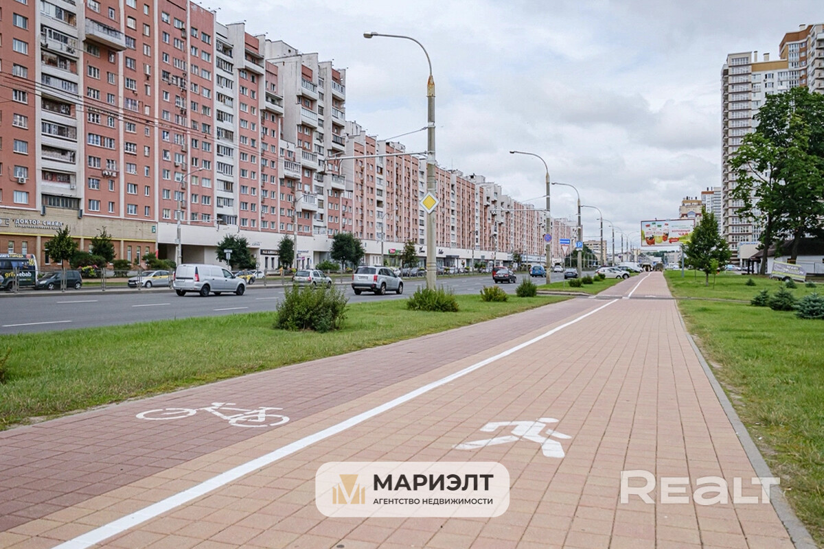 Рядом — **набережная реки Свислочь**, где расположены спортивные площадки и зоны отдыха, идеальные для прогулок и активного времяпрепровождения.