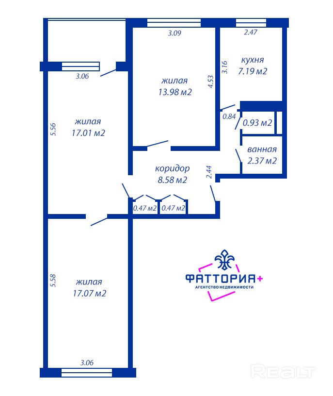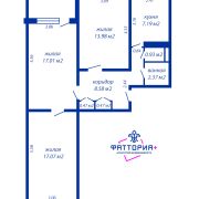 СНБ - 70,17м2 / общая - 68,07 м2 / жилая - 48,06 м2 / кухня - 7,19 м2