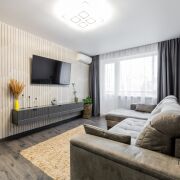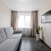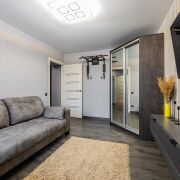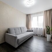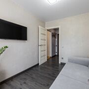 В квартире совсем свежий и аккуратный современный ремонт:  установлена входная металлическая дверь, окна - ПВХ, балкон застеклен, на полу в комнатах - качественный новый ламинат, в кухне, в коридоре и сан узле - плитка на полу + подогрев полов,  качественные межкомнатные двери, на стенах декоративная штукатурка, установлены встроенные шкафы. Дополнительно  произведена замена всей электропроводки  от электро счетчика. Квартира  продается полностью  готовая к проживанию,  со всей мебелью  и  техникой:  два полноценных  спальных  места. телевизор,  новая кухня,  газовая плита, духовка,  микроволновка,  система очистки воды, микроволновка, стиральная машина, современная душевая кабинка + инсталяция. Окна выходят на зеленую зону.  В квартире  тихо,  тепло и удобно.