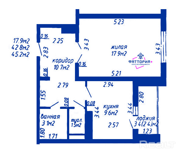 Одна из лучших планировок: общая площадь СНБ 45,2 кв.м.