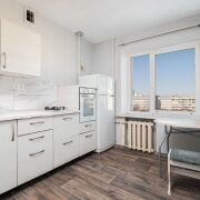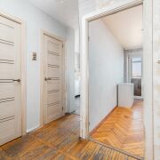 - В квартире выполнен аккуратный ремонт: установлена металлическая входная дверь, окна ПВХ, натяжные потолки, на полу — паркет и кафель. Пространство светлое и уютное, можно заехать и жить без дополнительных вложений.