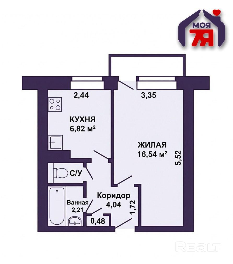 - Кухня площадью 6,82 м2 удобной формы, позволяет комфортно организовать рабочую и обеденную зоны. Санузел раздельный — практичное решение для повседневного удобства.