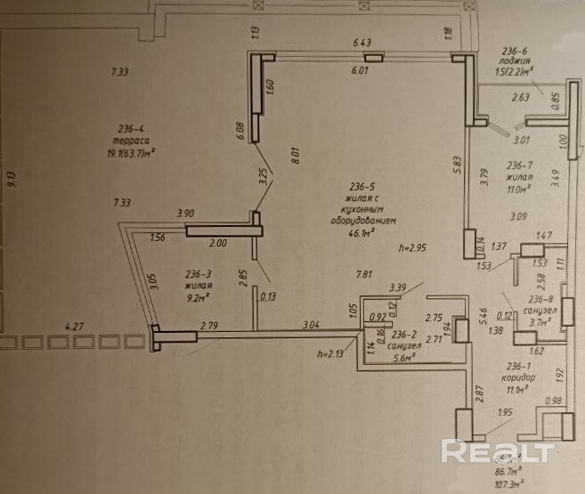 86.7 м²